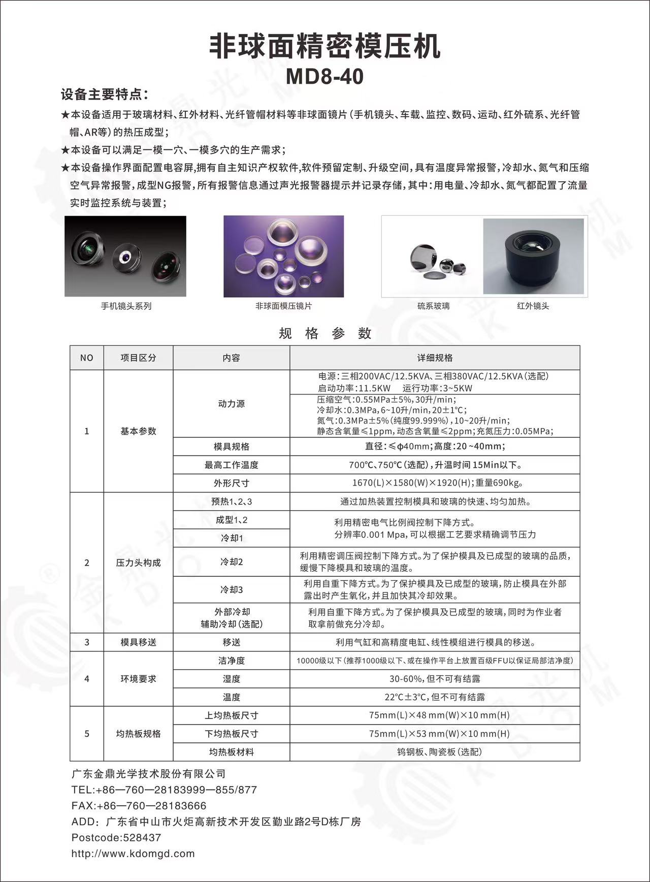 ★本設(shè)備適用于玻璃材料、紅外材料、光纖管帽等非球面鏡片(手機鏡頭、車載、監(jiān)控、數(shù)碼、運動、紅外硫系、光纖管帽、AR等)的熱壓成型;